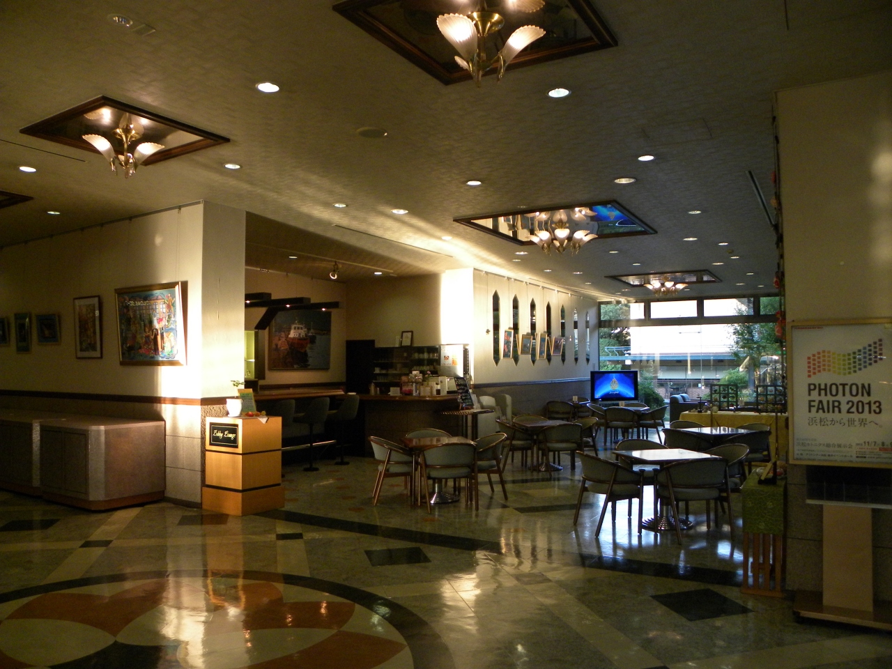 磐田市やや東部、国道1号線と国道1号バイパスの交差点近く、磐田原台地の末端にあって見晴らしはいいところです。道路からはただのビジネスホテルのようにしか見えませんが、ロビー・宴会場棟と宿泊棟が分かれており、中庭では夏はビアガーデンも催されています。大浴場「天神の湯」も併設されており、一般では1500円のところ無料で入浴できます。宿泊棟は廊下がやや入り組んでおり、壁が薄く廊下の話し声が若干聞こえますが、部屋が広いので快適に過ごせました。