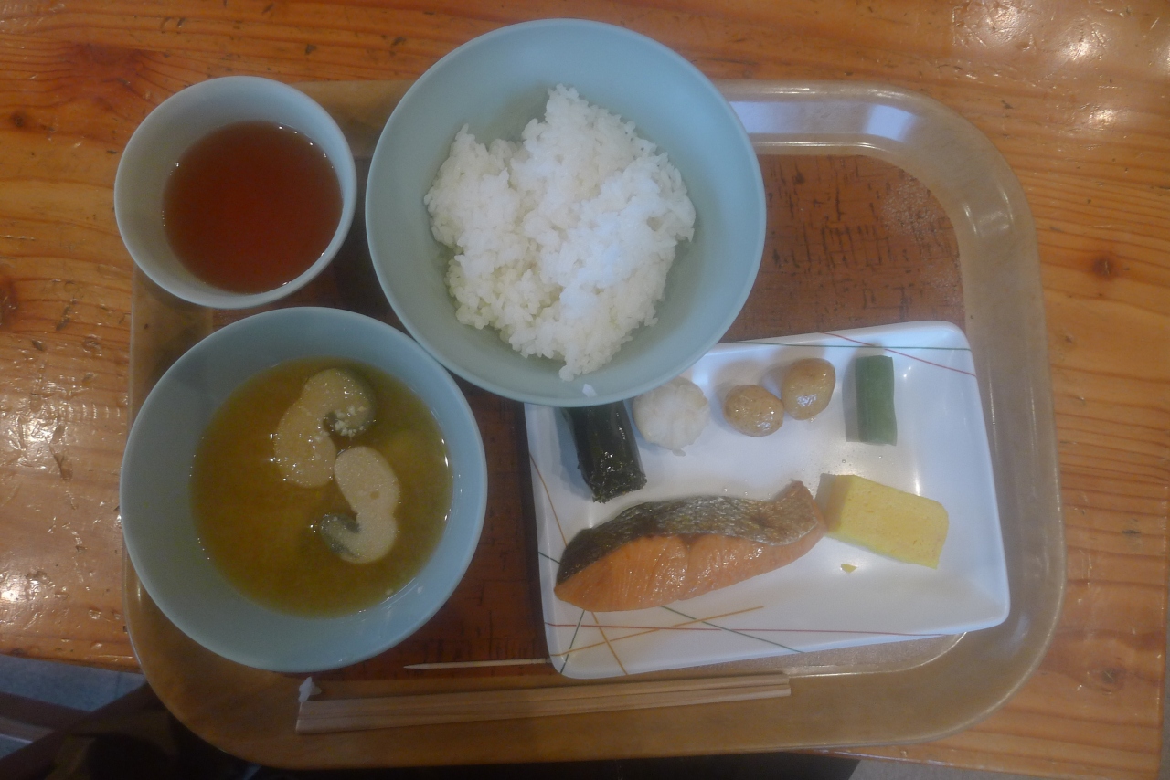 夕・朝食は白山室堂ビジターセンターの食堂でとりますが、加賀野菜など地元の食材をとりいれたメニューで、主菜は2種から選択することもでき、山小屋としては充実したメニューとなっています。割り箸には間伐材を使うなど環境にも配慮されていますが、マイ箸を持っていくといいでしょう。食堂入口前にはドリンクコーナーがあり、焙煎コーヒーの「白山きりまんじゃろ」がいただけます。一杯飲むごとに、白山とキリマンジャロの環境保全に5円ずつが活用されるそうです。