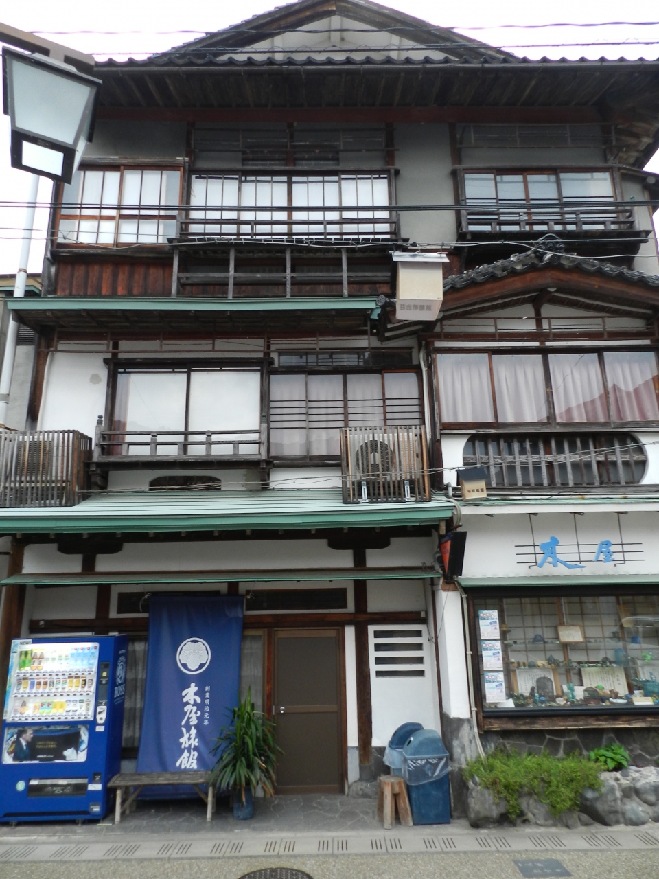 宿泊したわけではありませんが、三朝温泉街を散歩していたらとても由緒のありそうな建物を見つけ、よくみると木造の「木屋旅館」という旅館でした。