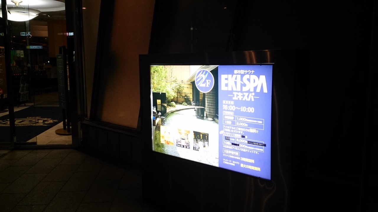 日帰り入浴の場合は、フロントを通らず、直接2階の駅スパの受付に行くのですが、階段が結構あるので、荷物が多い場合などは大変かと思います。