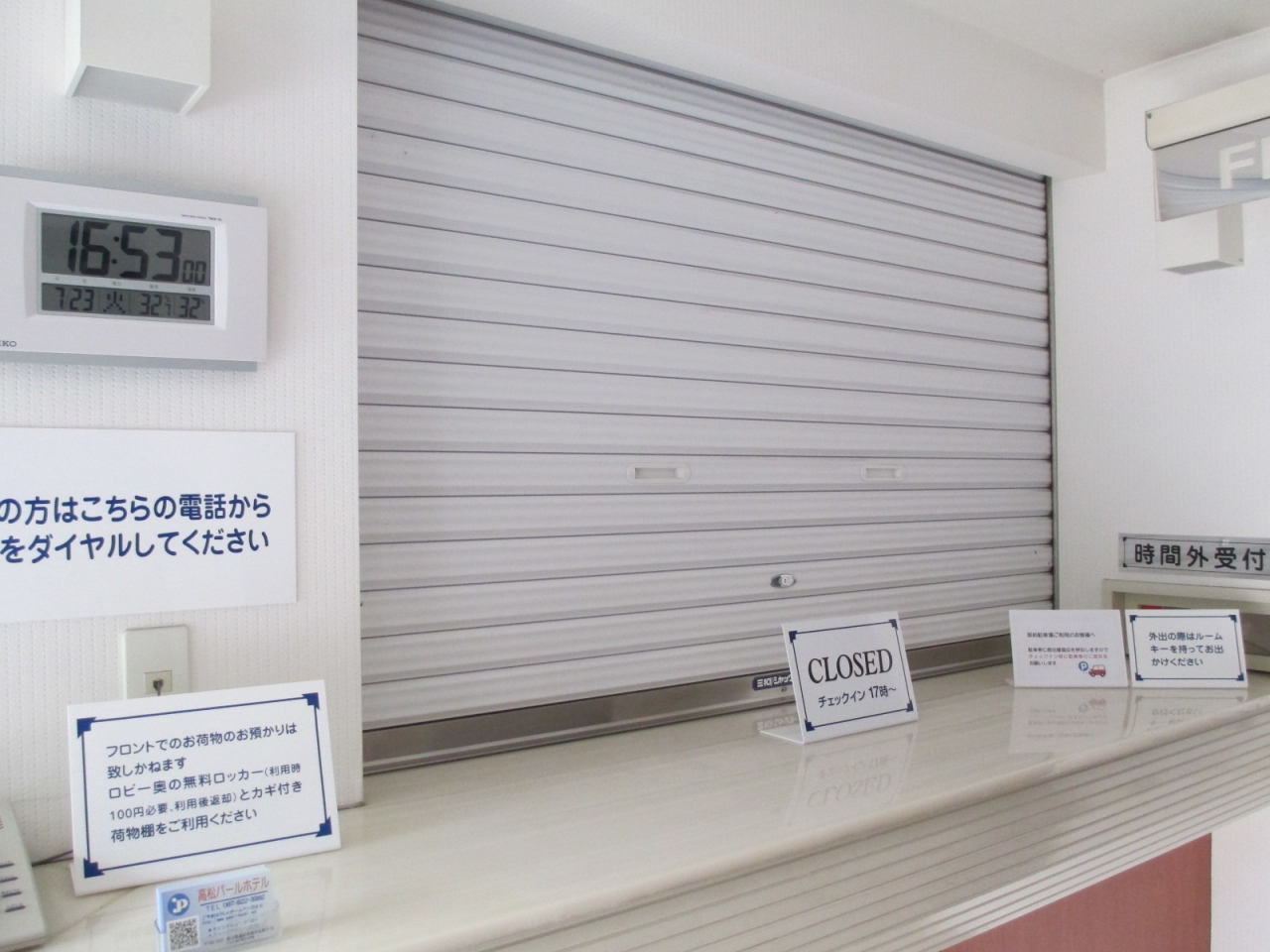 しかし、チェックインは17時からでそれまではフロントはシャッターが閉められています。