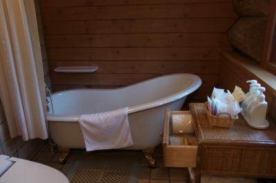 ッジ風の宿泊施設です。猫足バスタブなど、雰囲気はあります。ただ、結構古くて