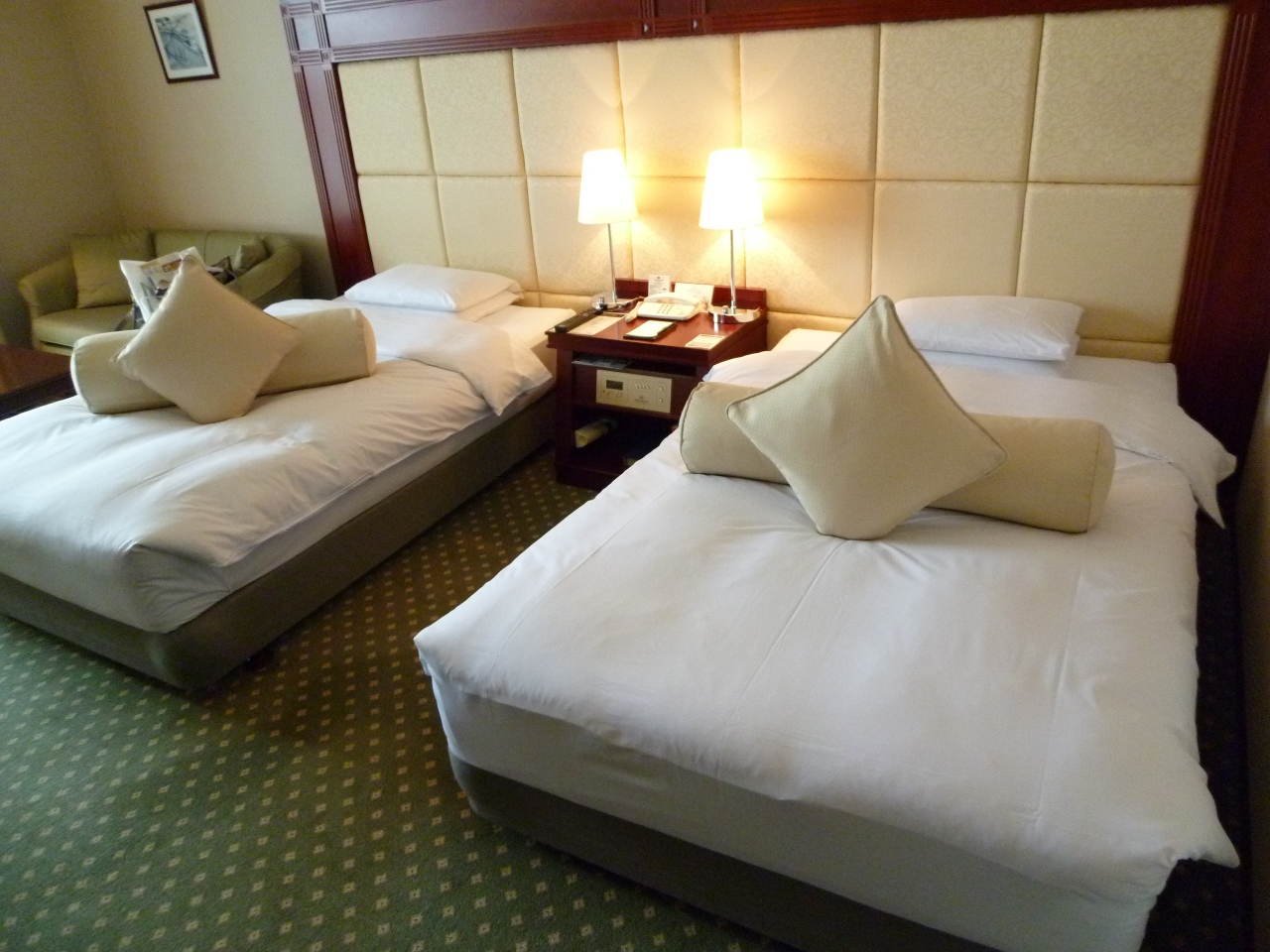 部屋は広いです。50平米位あると思います。ツインだとベットはダブルベットが二つで十分なお部屋です。