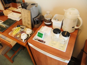 部屋にはコーヒーメーカと社員手作りクッキー付いており、チェックイン後くつろぐことができます。