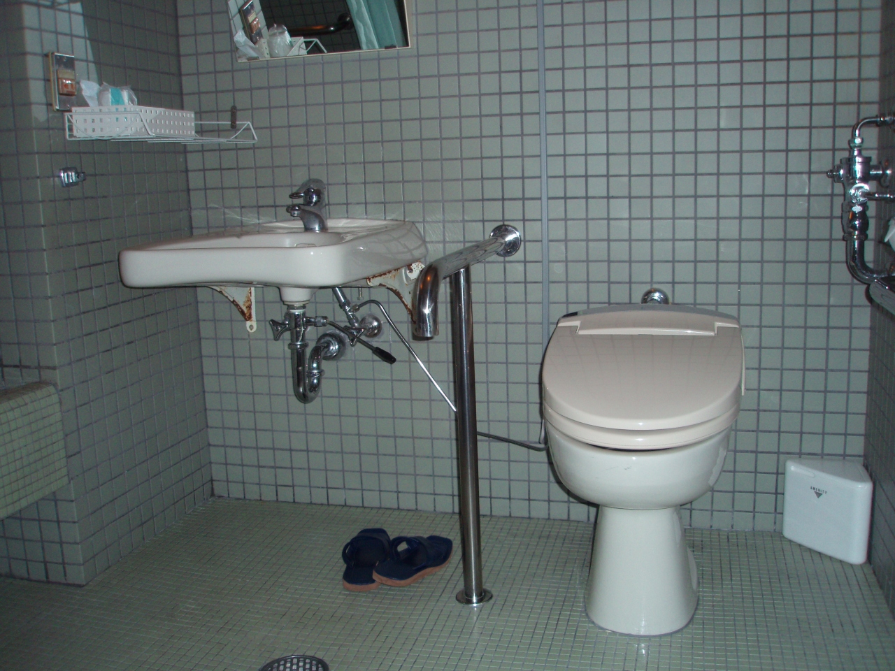 まだハートビル法が施行される前からあったようなホテルです。和洋室のバリアフリールームが一部屋あります。浴室やトイレに昔の作りが見て取れます。ですが、浴室は私の障害には使いやすいのです。車椅子の座面と洗い場の高さが同じです。洗い場に乗り移りさえできれば、腹筋がありませんので上半身が倒れても安心して体を起こせます。一人旅が多い私には便利なのですが、この作りは介助者がいるときには不便かもしれません。
