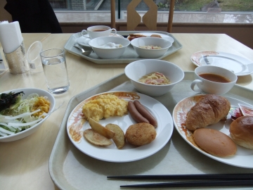 朝食バイキングはホテルのレストランでしたが、メニューも味も普通でした。