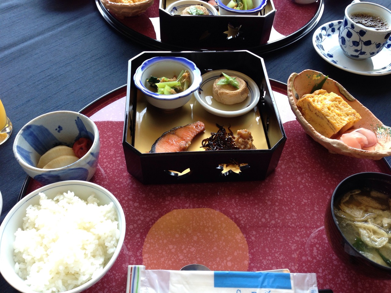 朝食も同じ食事処で。和食中心の朝食膳。ブッフェではなく一人一人盛り付けられた食事が用意されていました。量も調度良く、落ち着いてのんびり食事が出来ました。