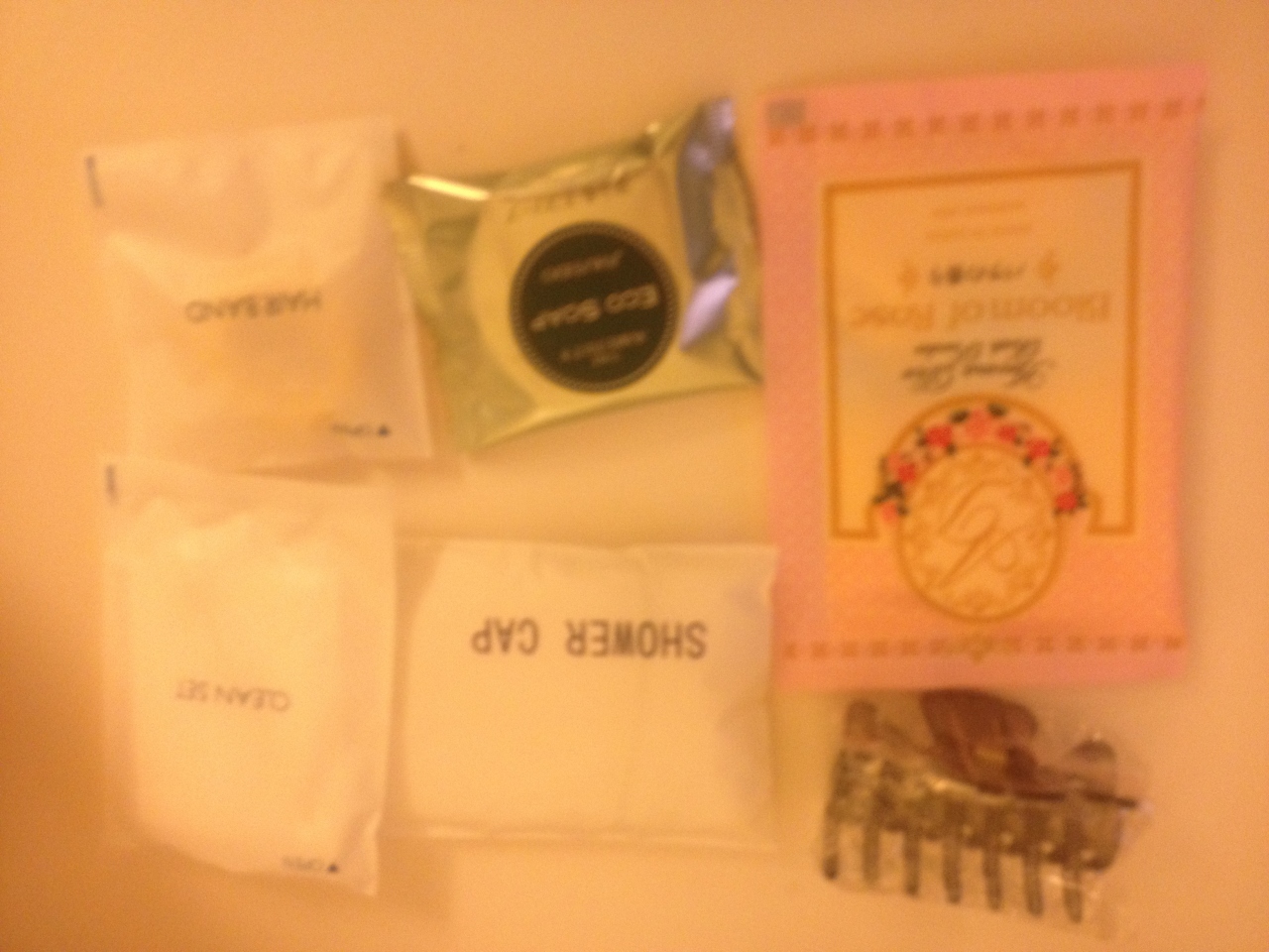 チェックイン時に入浴剤やシャワーキャップなどのアメニティをいただきました。