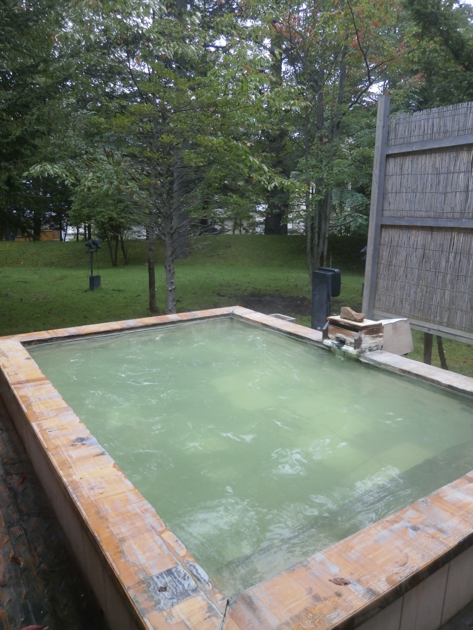 温泉も湯元温泉から引かれたもの。硫黄泉ですので、臭いがちょっとあり、ぬるっとします。貴金属関係のアクセサリーをはめると錆びるので気をつけて下さい(その旨の記載が書かれていました)。