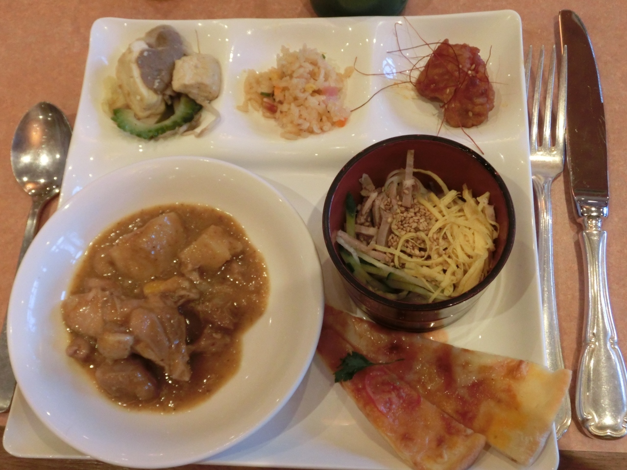 問題は、その食事時間です。普段は7時からの朝食が、団体の出発に合わせて6時30分からになってました。って事は、6時30分には団体が押し寄せるって事です。何しろ今時ツアー客の殆どは熟年以上ですから、朝早いんです。しかも時間の制約が有るので、一気にドッと来ます。なので、ゆっくり食事をしたければ(リゾート地としての雰囲気を壊されたくなければ)、団体の出発する頃、8時前後をお勧めします。