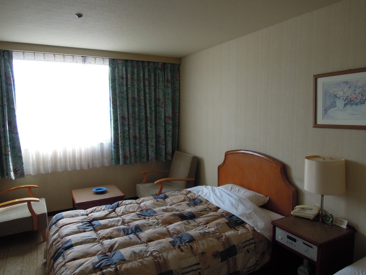 ふるい感じのホテルでしたが、全般にまあまあかなと思いました。近隣にはビールを売っているところが無く、ホテルの自販機だけです。でも、今秋にはコンビニが近くにできるそうです。ホテル内には、お土産屋さんも併設してありました。お風呂が広々して良かったです。