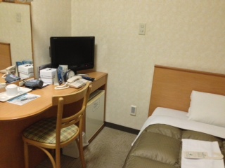 客室には、TV(シャープ20型、目ざまし時計、ドライヤー、電気ポット、空の冷蔵庫、消臭剤、ウォシュレット、スリッパがあります。また、エレベータ近くにズボンプレッサが置いてあり、とても機能的です。