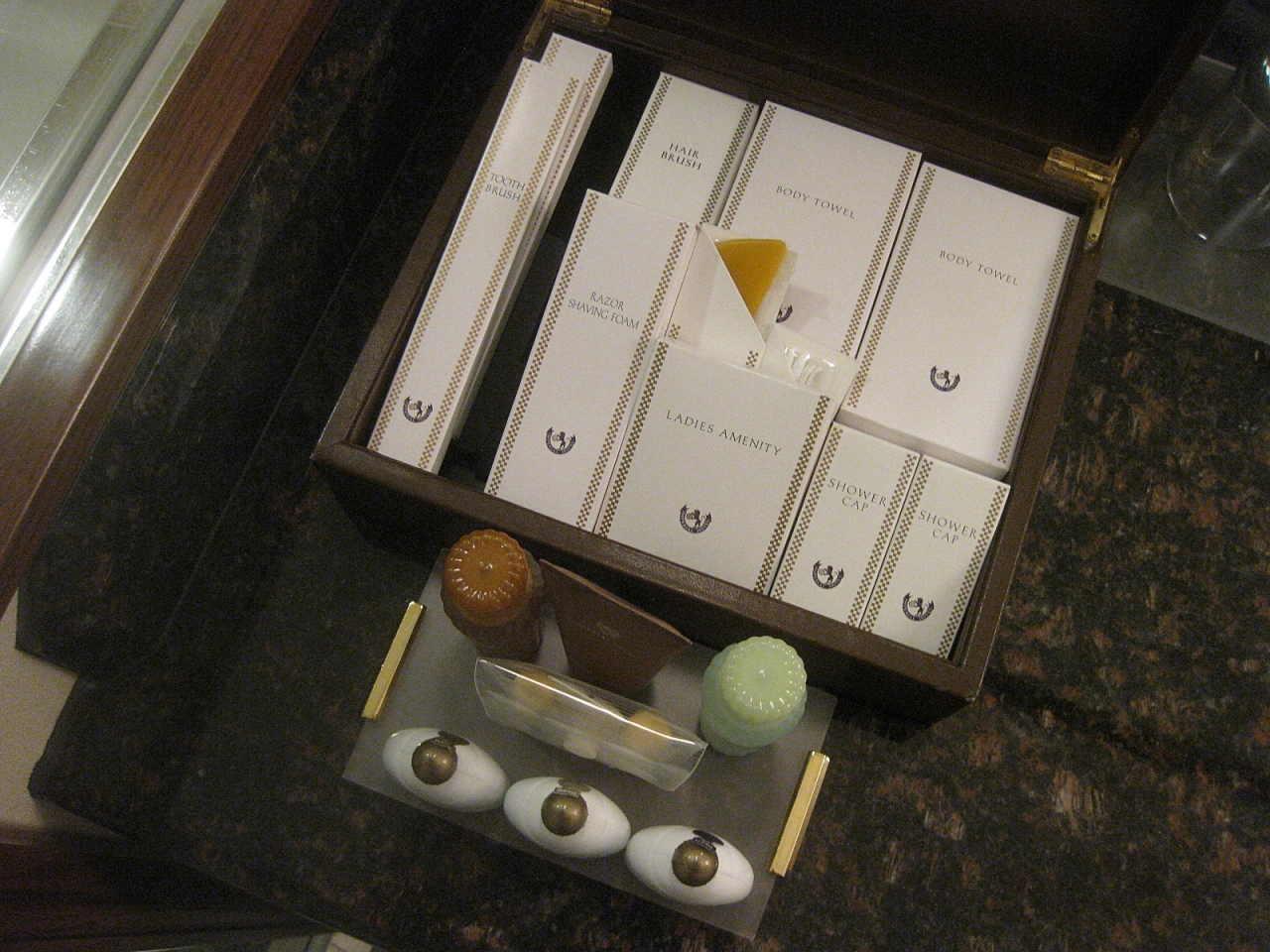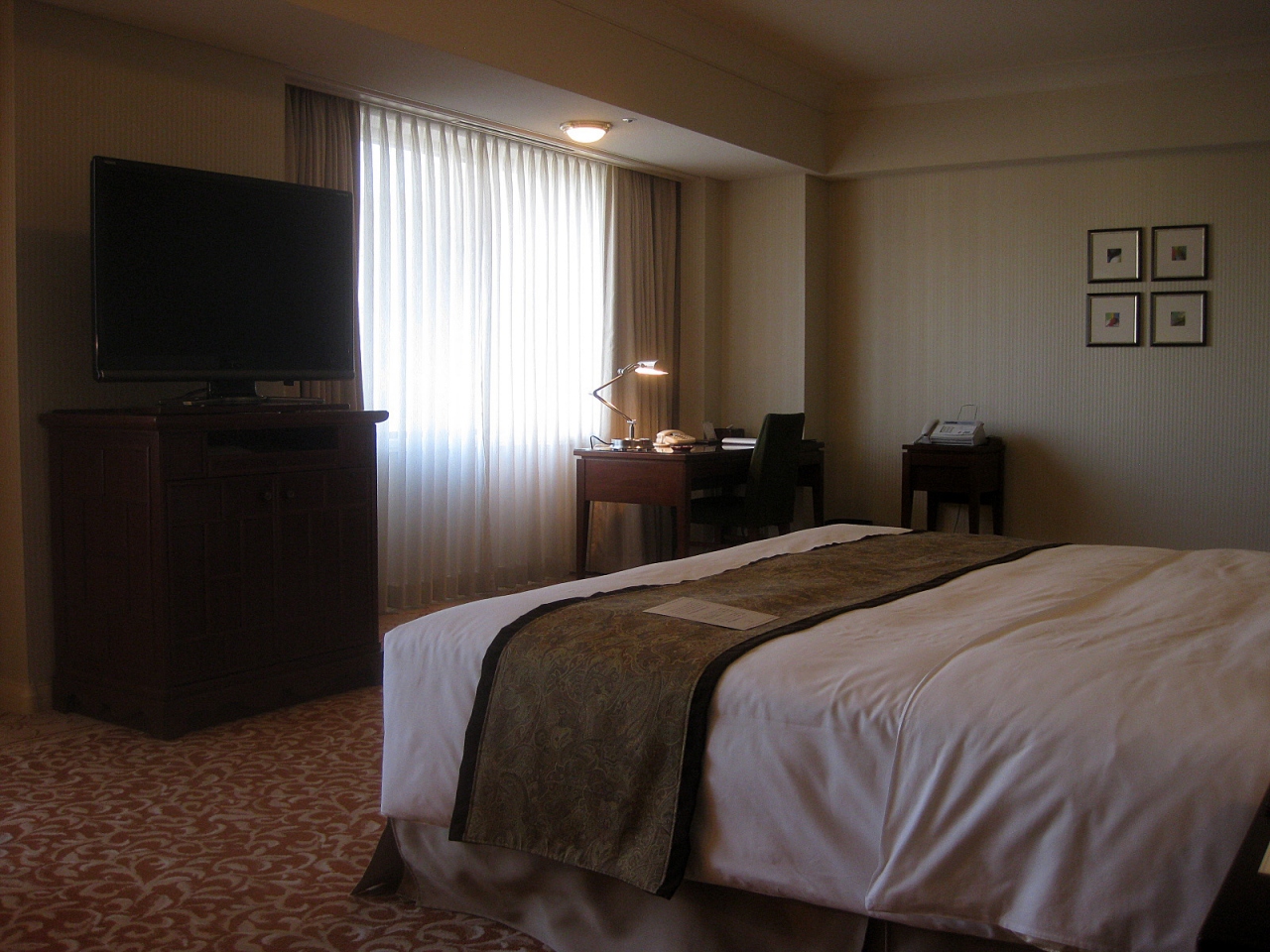 タクシーで到着した瞬間から特別な時間が始まります。ベル係が素早く荷物を受け取り、レセプション奥のテーブルで座ってチェックイン。チェックインには長い列ができていることが少なくないので助かります。これはインペリアルクラブ会員あるいはLHW会員用の特典なのでしょうね。歴史あるホテルらしくロビーは質感が高く、エレベーター前には常に3名ほどのエレベーター・レディーが配置されるなど、人的サービスには大変な費用をかけていることが分かります。アサインされたのは今回もインペリアルフロアのジュニア・スイート。エレベーターを降りると、和服姿の美しいフロアアテンダントの方々の優しい挨拶に口元も緩みます。さて客室は相変わらず質感が高く、ベッドは寝心地最高です。長い歴史を誇る「帝国ホテル東京」ですが、実はかなりのハイテク。照明やカーテンなどは、すべてベッドサイドのコントロールパネルで行えますし、客室内にはプラズマクラスターの空気清浄器も内臓されています。仕事で利用する人も少なくないためFAXも標準装備され、NETスピードもまったく問題ありません。バスルームはテレビ付、バスアメニティは当然フル装備、基礎化粧品も男性用・女性用共に用意されています。そして圧巻はバスタブには自動給湯装置も付いています。ミニバーには無料コーヒー・紅茶・日本茶に加え、梅昆布茶があるのも日本らしいと思います。宿泊しないと分かりませんが、「さすが帝国ホテル」と唸りたくなる仕様がてんこ盛り、そんな客室だと思います。