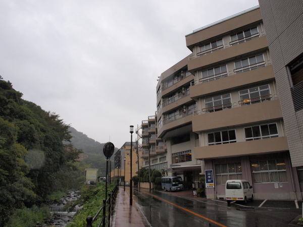 湯河原の温泉街のいちばん手前にあります。駅から頻繁に送迎バスが出ています。