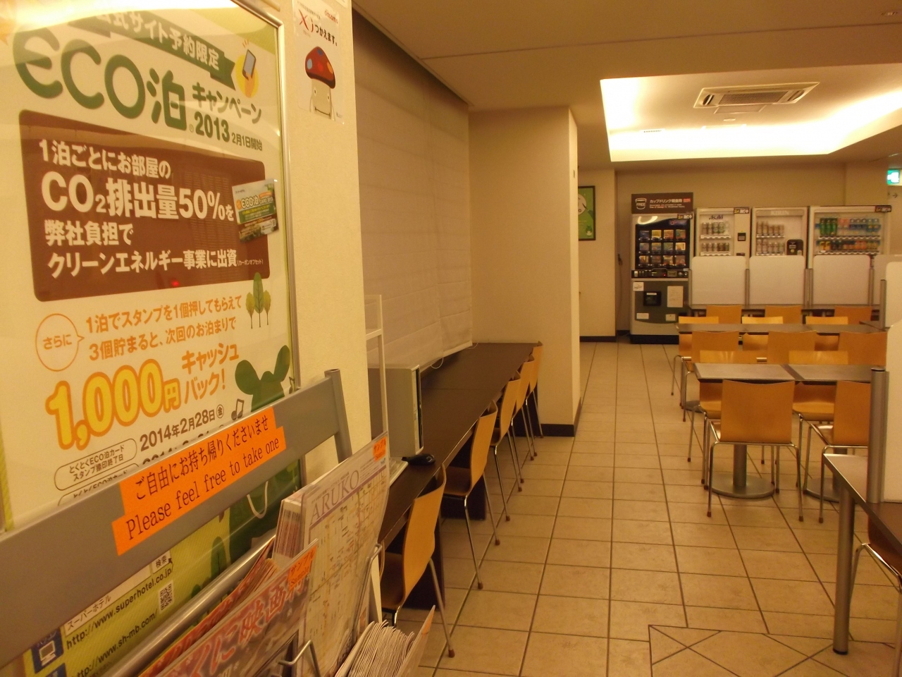 ここのスーパーホテルは、他にある天然温泉施設がありませんでした(温泉期待する方はもうひとつのスーパーホテルへ)。