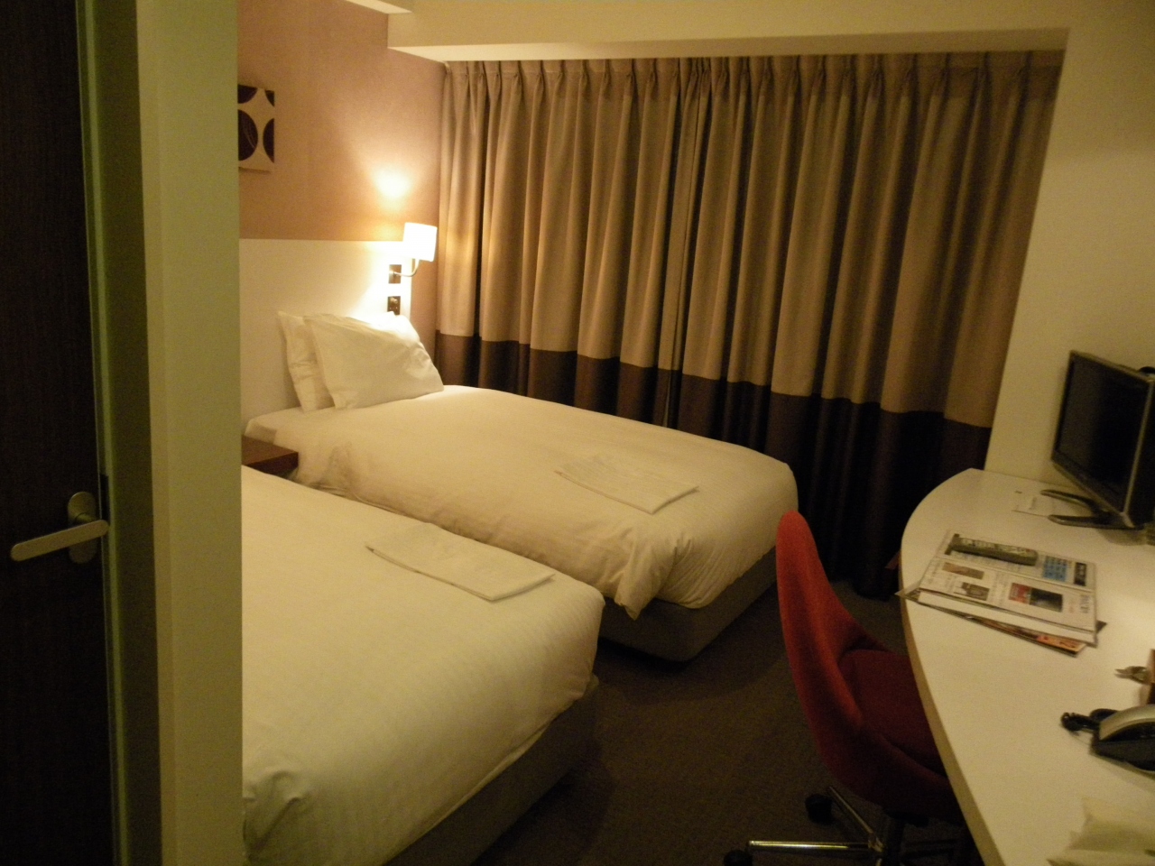 お部屋はビジネスホテルの割には広くてベッドも大きめです。