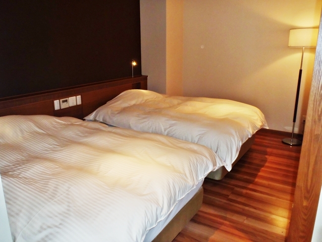 客室は2007年オープンの「晴の棟」と2011年オープンの「海の棟」があり、宿泊したのは「海の棟」のリゾートツイン。