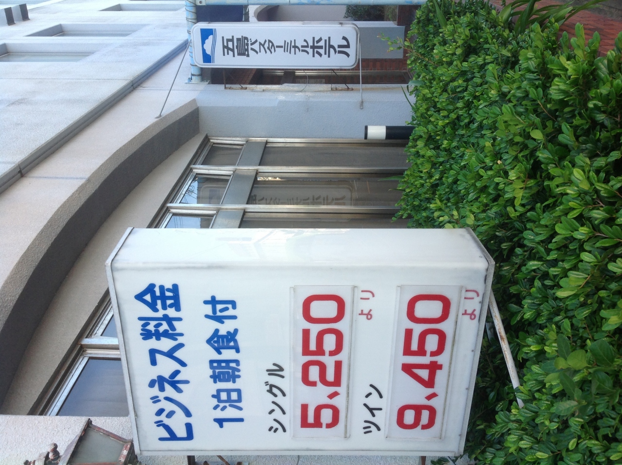 福江の市街地にあるホテルです。カンパーナホテルのほぼ隣にあります。立地という観点ではかなり優れたホテルだと思います。またこの立地にしては値段も比較的安く、とにかく安く仕上げ、できるだけ市街地に近いのがいいという方にはもってこいです。