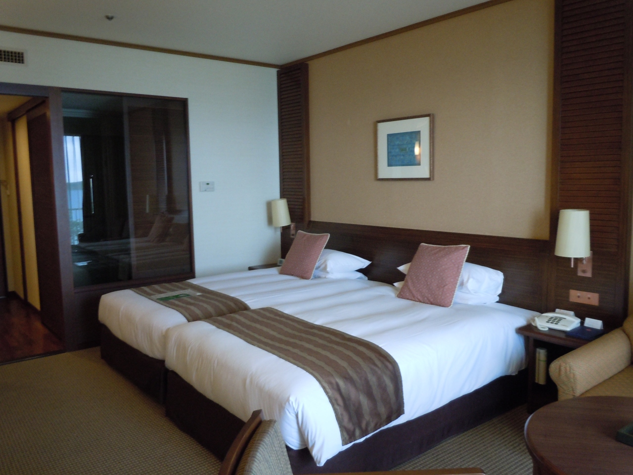 予定より早くホテルに着いてしまい、とりあえず荷物を預かってもらおうとフロントへいったところ部屋に入れるとの事、そしてスタンダードから最上階のデラックスツインにグレードアップしてもらえました。