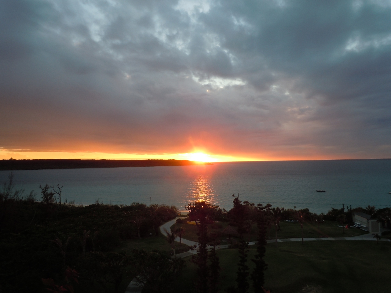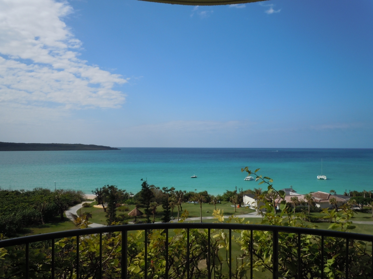 バルコニーからは白いビーチと青いグラデーションの海が広がり夕日も楽しめ癒されました。