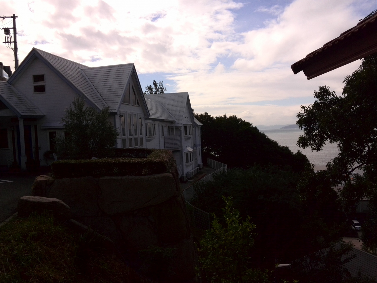 部屋は広くてバルコニーがあって、木立の向こうに海が見えました。