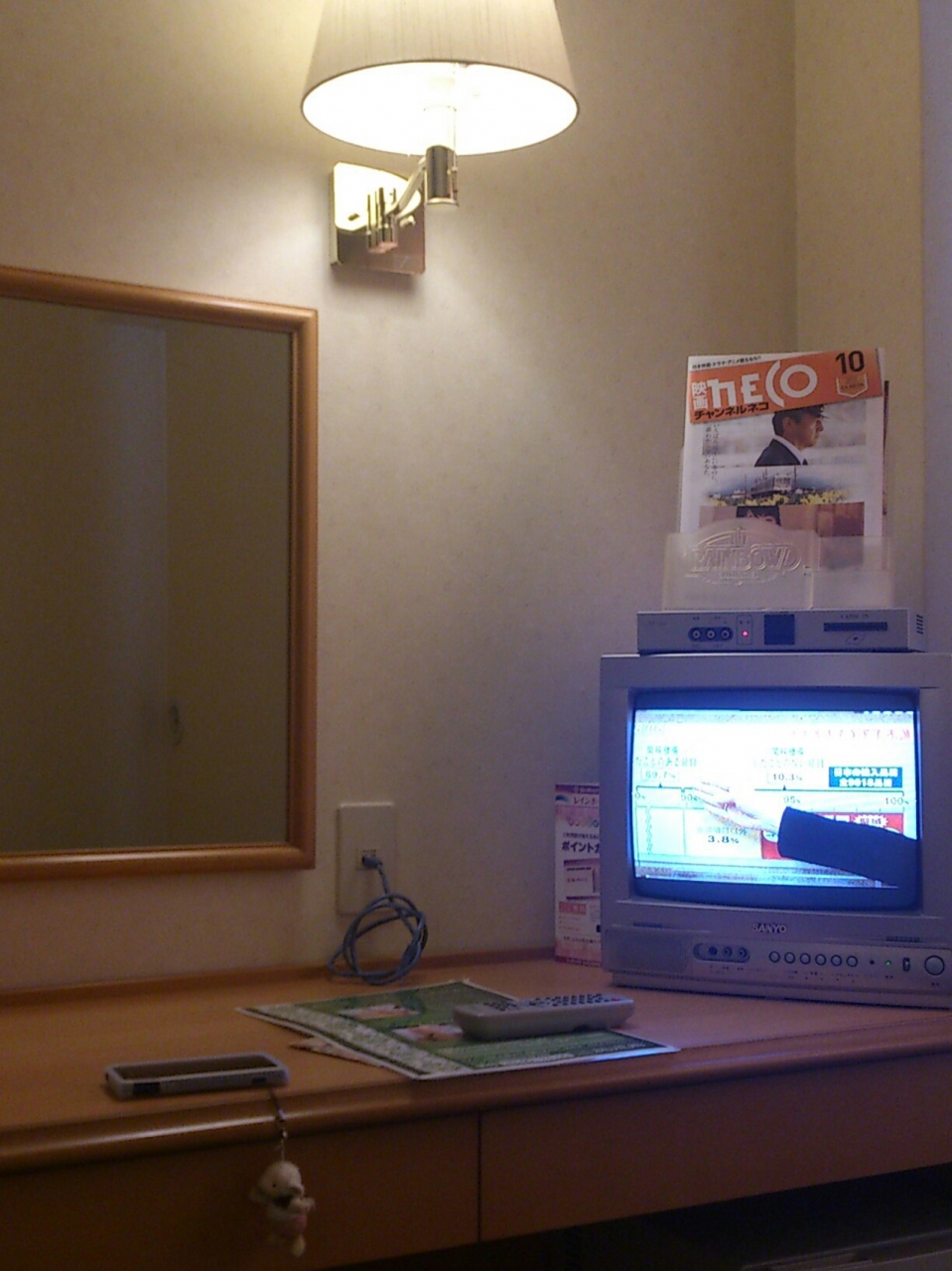 部屋は、普通のビジネスホテル並みです。テレビが、まだブラウン管でアナログ変換で映ってました。