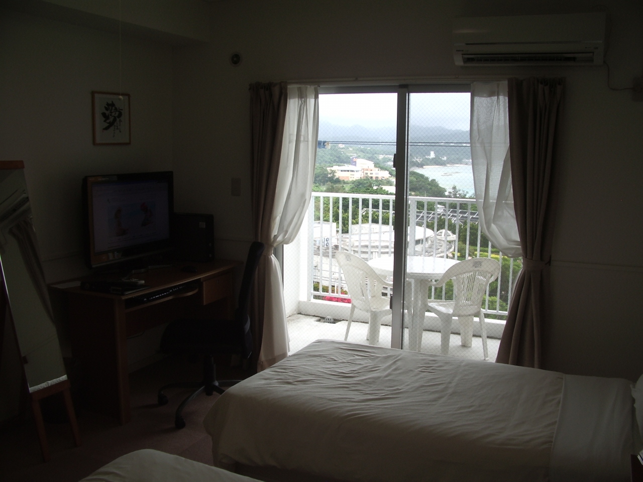 海洋博公園の前に位置する海が見えるロケーションのコンドミニアムです。美ら海水族館に行かれる方には大変便利な宿かと思います。以前は恐らく普通の賃貸マンションだったものを使用しているようです。家財道具、家電、PCまであって、普通に生活出来ます。