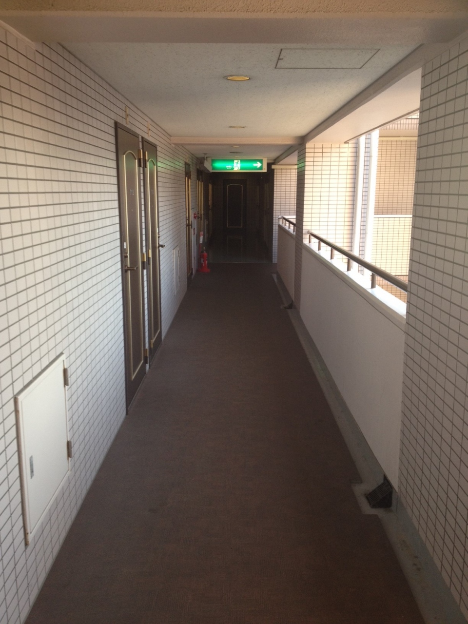 エントランスは普通のホテルですが、ロビーからエレベータに乗って部屋へ向かうと、普通のマンションの通路のようになっております。