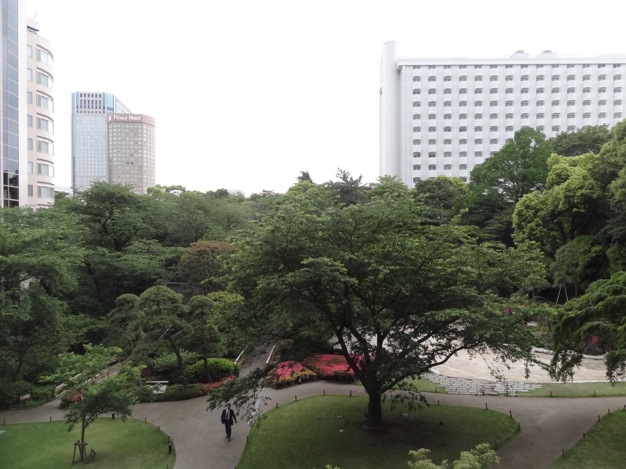 低層階でしたが庭園真正面の部屋。緑とピンクのツツジの花がとても綺麗にみえます、都会の真ん中なのに静かでゆっくりくつろぐ事ができました。