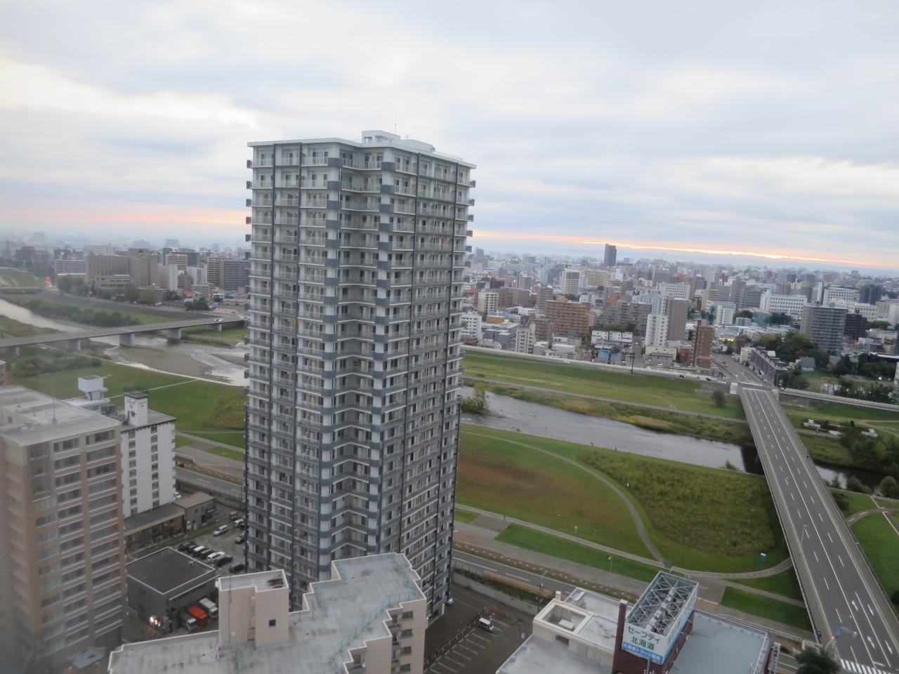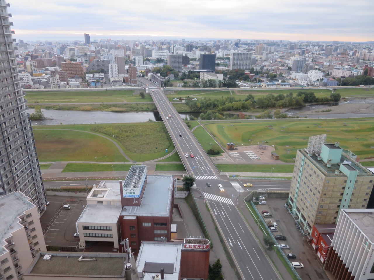 中島公園駅から徒歩2~3分以内で、すすき野中心にも近く、眼下に川が流れていて静かでとてもよいホテルです。今回はラッキーな事に最上階の25階に泊まることができました。宿泊すると部屋風呂ではなく、3階のスパへはスリッパ、浴衣のまま(タオル、バスタオル手提げ等は部屋にあります)行けます。出張で忙しい場合も、お土産や、海産物等も購入することができるのでとても便利です。