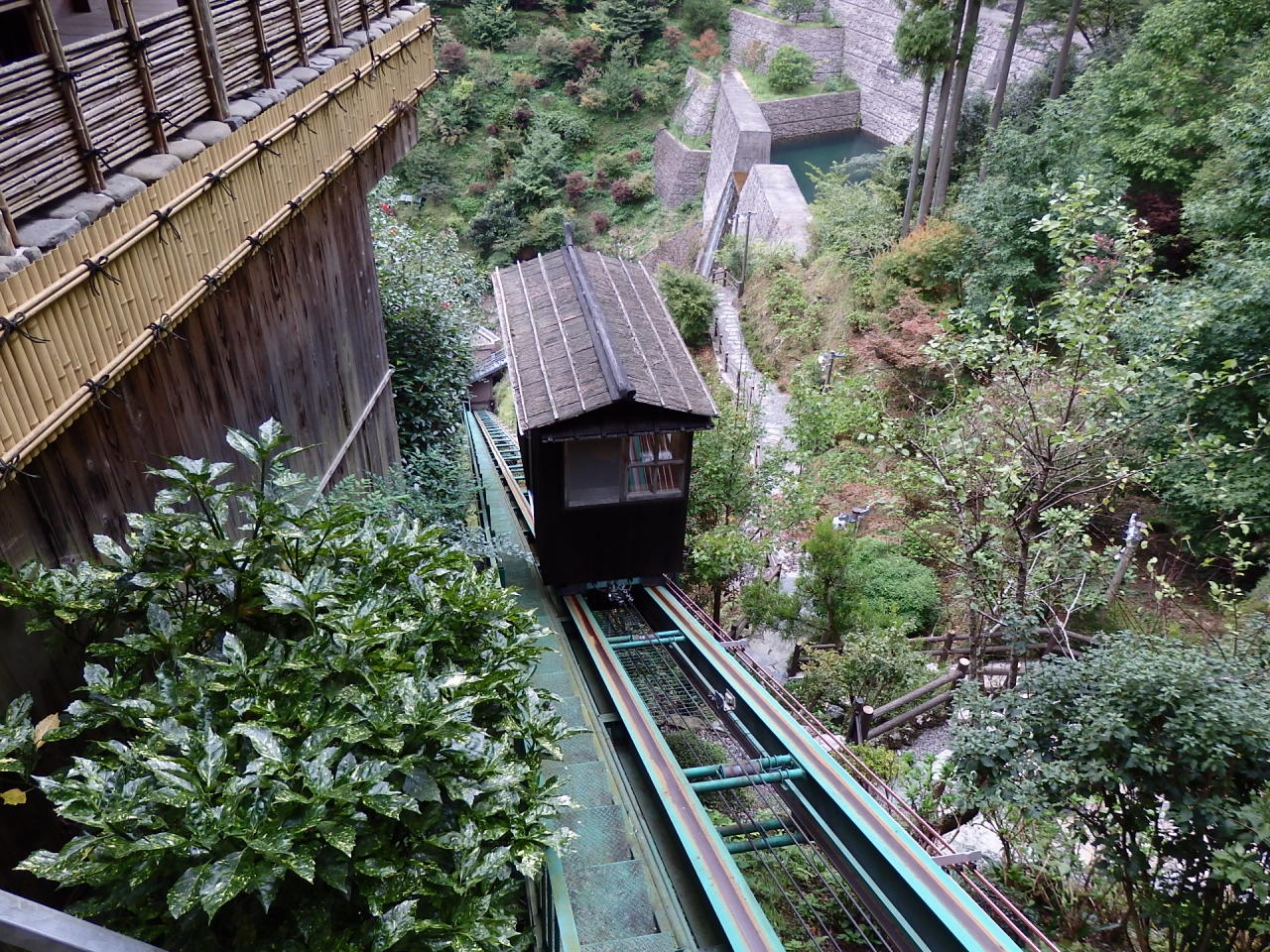 ケーブルカーに乗って登って行く露天風呂ってのも斬新やったし。