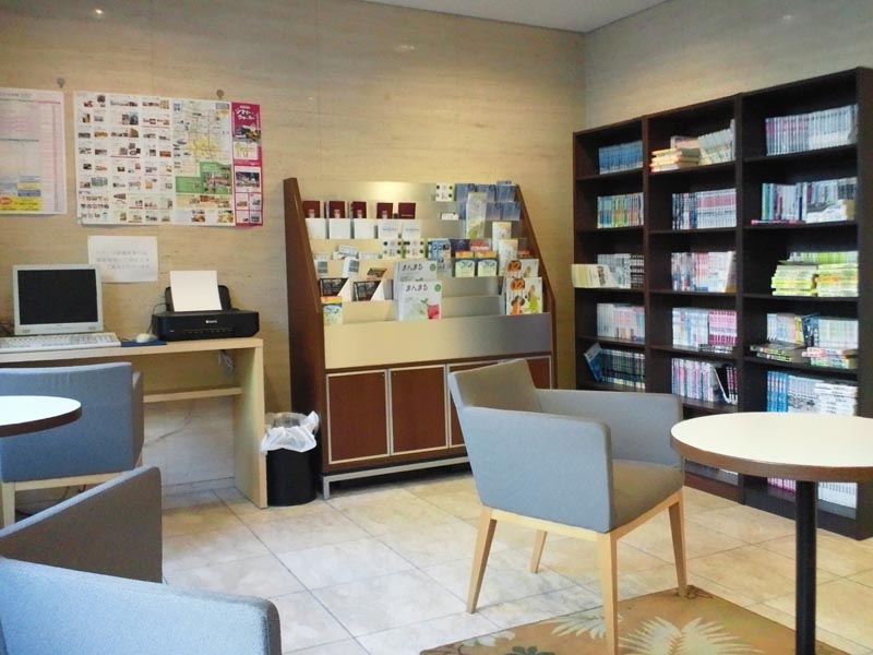 ロビーの横には、漫画コーナーがあり、パソコンとFAXも置かれていました。