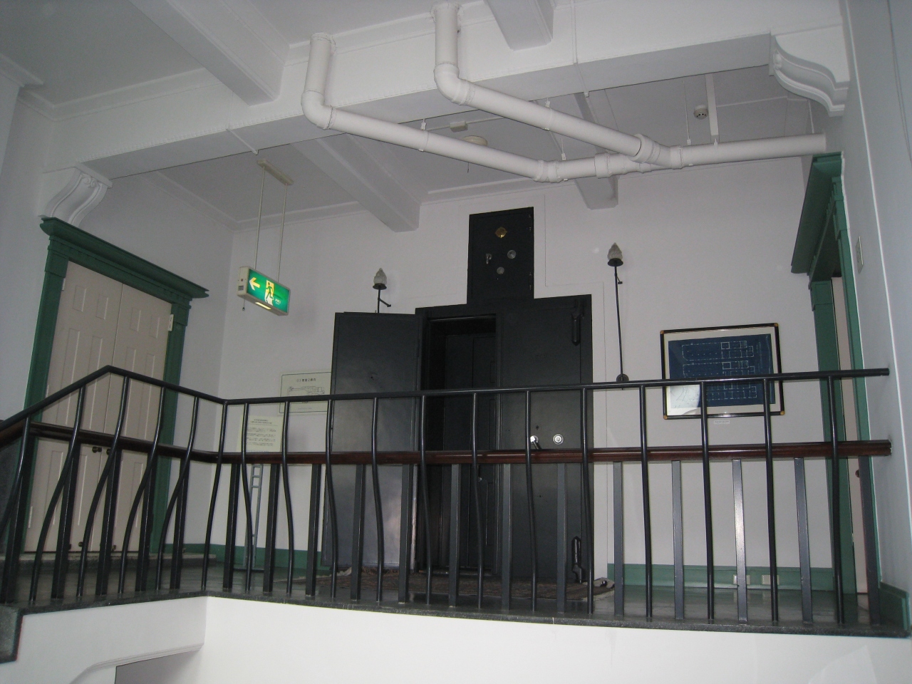 分厚い金庫室の扉が残っており、歴史を感じます。