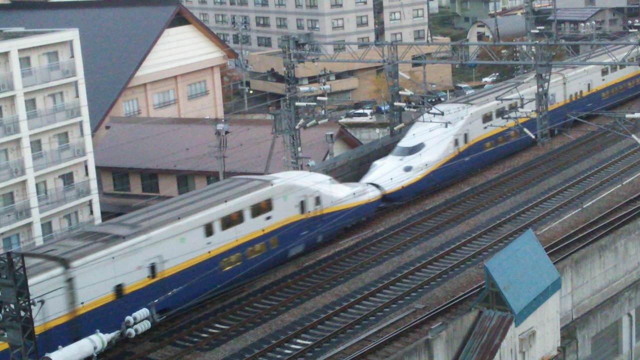 部屋からは、越後湯沢駅から出発する上越新幹線が間近に見ることが出来ます。