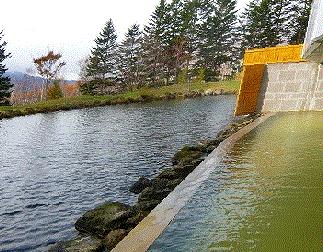 露天風呂の前の池には鯉がいて、温泉の近くが温かいためか近寄ってきます。