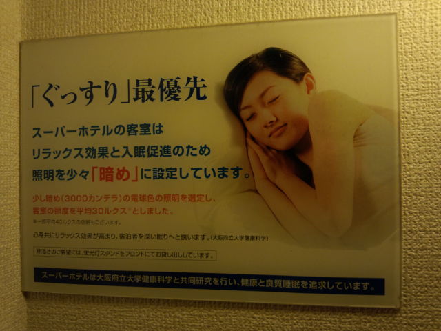 リラックス効果のため、部屋の照明が少々暗めとあるのですが、とにかく暗くて本を読もうとか書類の整理とかは厳しい。フロントでライトスタンドの貸し出しはあるようですが。