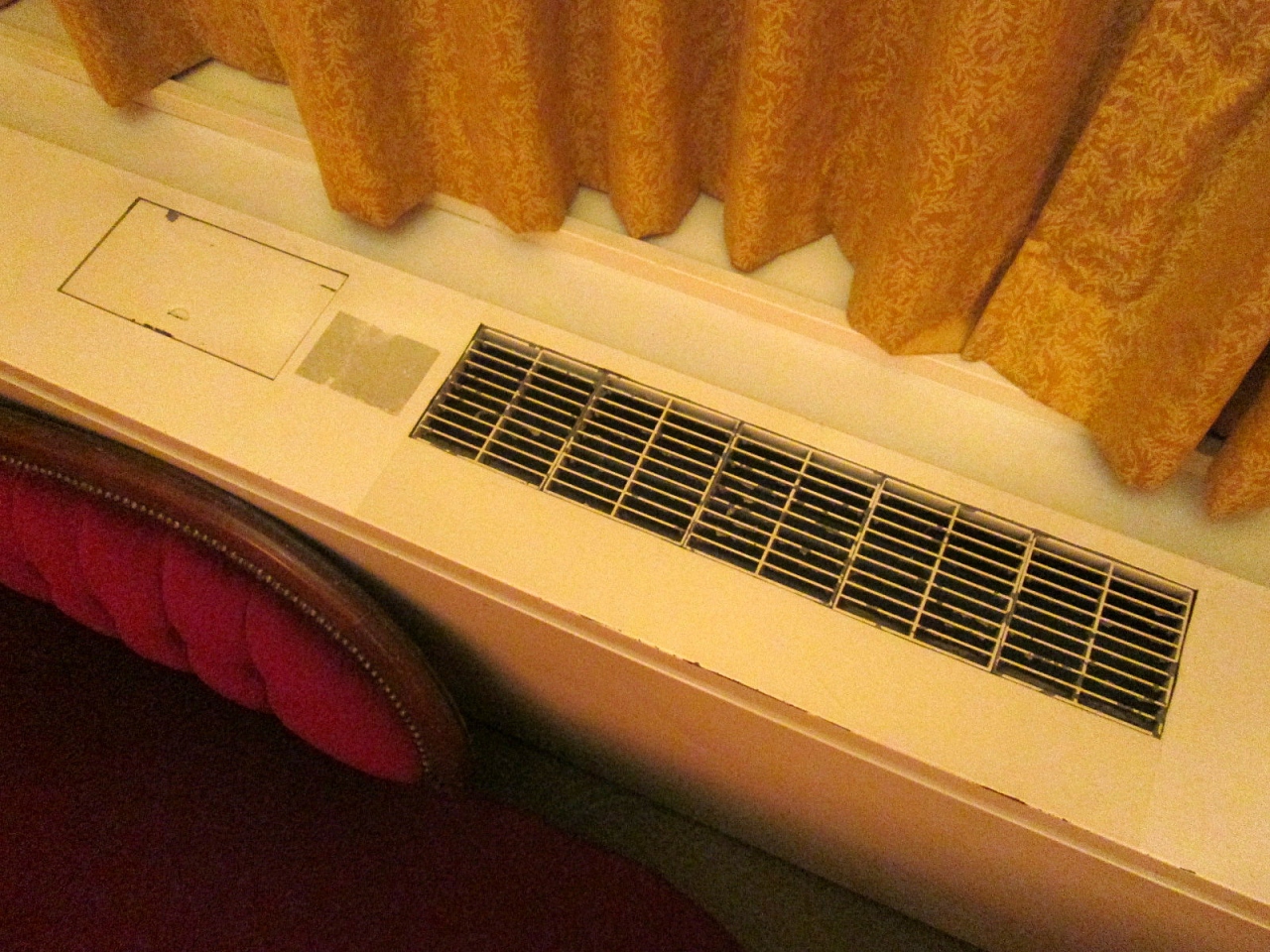 - アサインされたのは欧風デザインの客室ですが、エアコンも時代物(笑)、景色も期待できませんが、それなりに広いのは良かったです