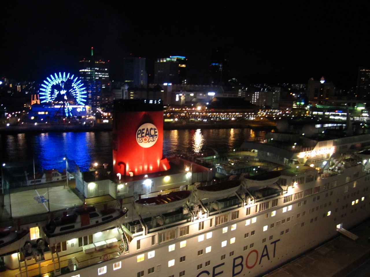 とてもキレイだったのですが、ちょうどピースボートが就航しており