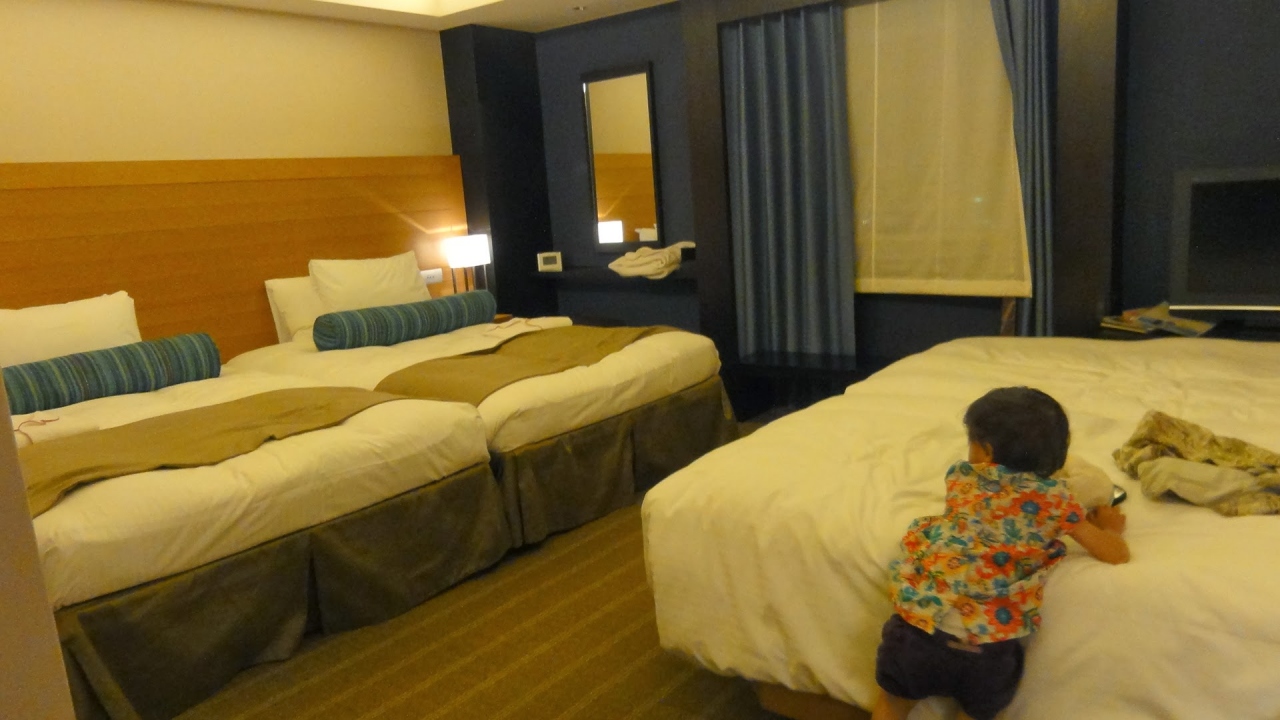 4ベッドのファミリールームがなんと6000円(朝食なし)。だったらタクシー代も十分出せるんじゃない、ってなわけで泊まってきました。実際、ゆいレールの駅から徒歩圏のホテルより、タクシー利用のこのホテルのほうが実際楽でした。暑くて思ったより歩けませんので。