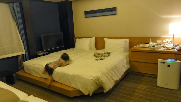 当日は、プレミアムデラックスの禁煙部屋にアップグレードされていて、常設ベッドとソファーのベッドで4人用になっていました。おしゃれなインテリアで気分が盛り上がりました。平日木曜とはいえ、夏休み中だったので、この料金と質に驚きとともに大満足です。