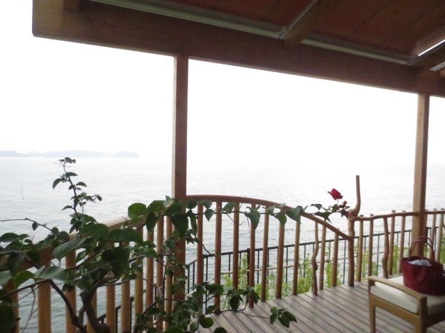 日間賀はふぐとタコが良く獲れます。今回はふぐのコースをいただきましたが、タコのまる茹でもあり、どちらも新鮮なものなのでおいしくいただけました。食事は大きな窓から海がよく見える広間のようなところでいただきました。ベランダのようなところにテーブルやカウンターがあり、海を見ながらのんびりコーヒーやジュースをいただけとてもくつろげました。