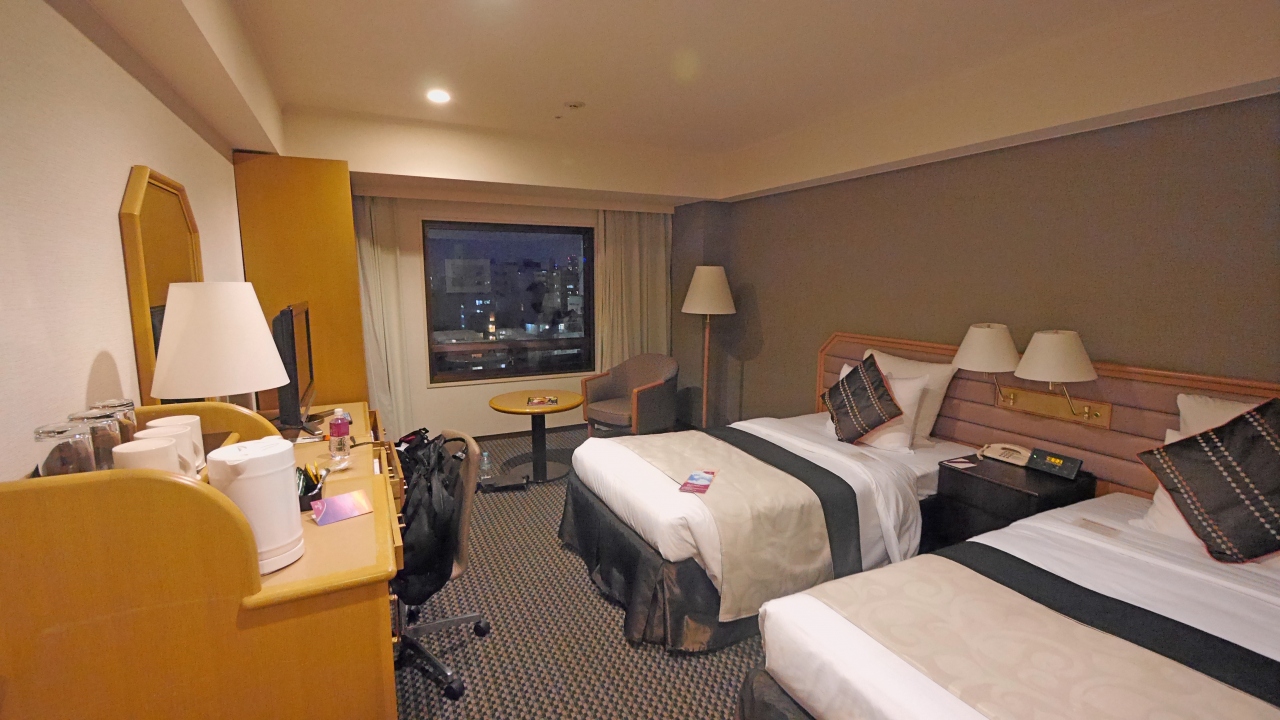 ANAクラウンプラザらしくシックにまとまった客室.ツインのシングルユースで宿泊したが十分な広さをもった寝やすいベッドなど満足した.風呂もひろい.唯一景観がハーバービューと言う名だったが私の部屋からは県庁しか見えなかった.朝食は沖縄そばなど郷土料理を揃え,またオムレツ,カレーなど五つ星の矜持をしめす料理など品数が多かった.私にとってはナハテラスより泊まりやすい.泊まっていいホテル.(2014年6月も宿泊.この際も県庁側だった)
