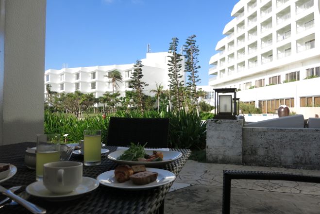 滞在予定の方にミニ情報・・1. 朝食;席に限りがありますが、天気が良く、風が無ければテラスで。2.ホテル限定品販売;朝食で提供される豚そぼろ味噌が、ホテル内店舗「てぃんがーら」(海に向かって左端の店舗。コンビニの反対側。右端は物産店と特選館)で購入可。あの有名なラー油もありました。3.琉球ガラス;稲嶺盛吉氏の作品が特選館に。4.外食に飽きたら;近くのコンビニで。地魚の刺身(イラブチャー、カタカシ)が絶品。5.市街地へのアクセス;バスで220円、タクシーで1000円以内、代行 2300円位(石垣は高い)6.レンタカー;滞在途中で利用する方にはホテル近くにタイムズレンタカー(旧マツダレンタカー)の営業所あり。空港との送迎付。