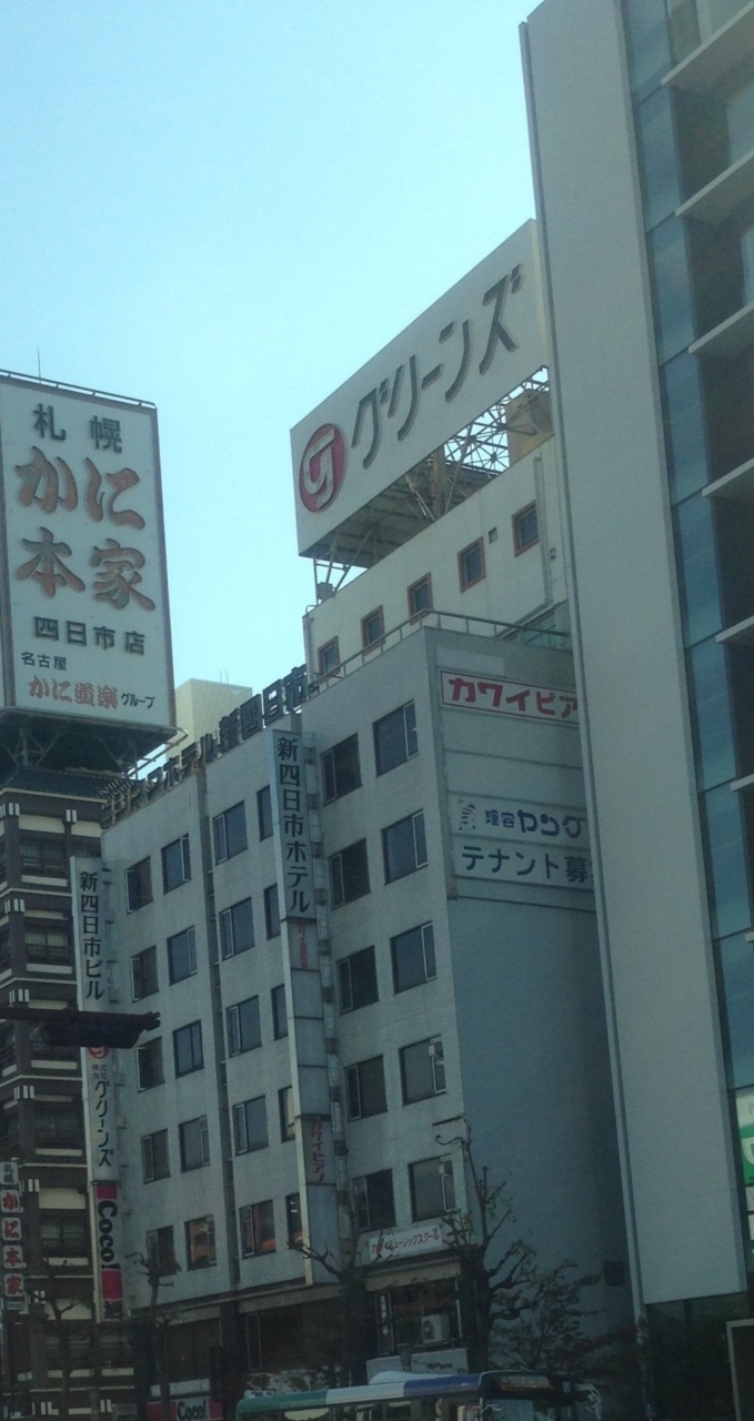 四日市駅東口を出て徒歩で2.3分の所、大通りに面して建っています。