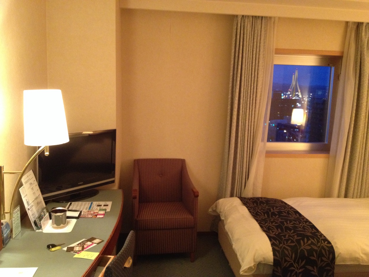 部屋は11階でしたが、窓からは青森湾やアスパム、ベイブリッジなどが見えました。やや狭めでしたが一般的な広さだと思います。ただ壁紙が一部剥がれていたのが残念でした。