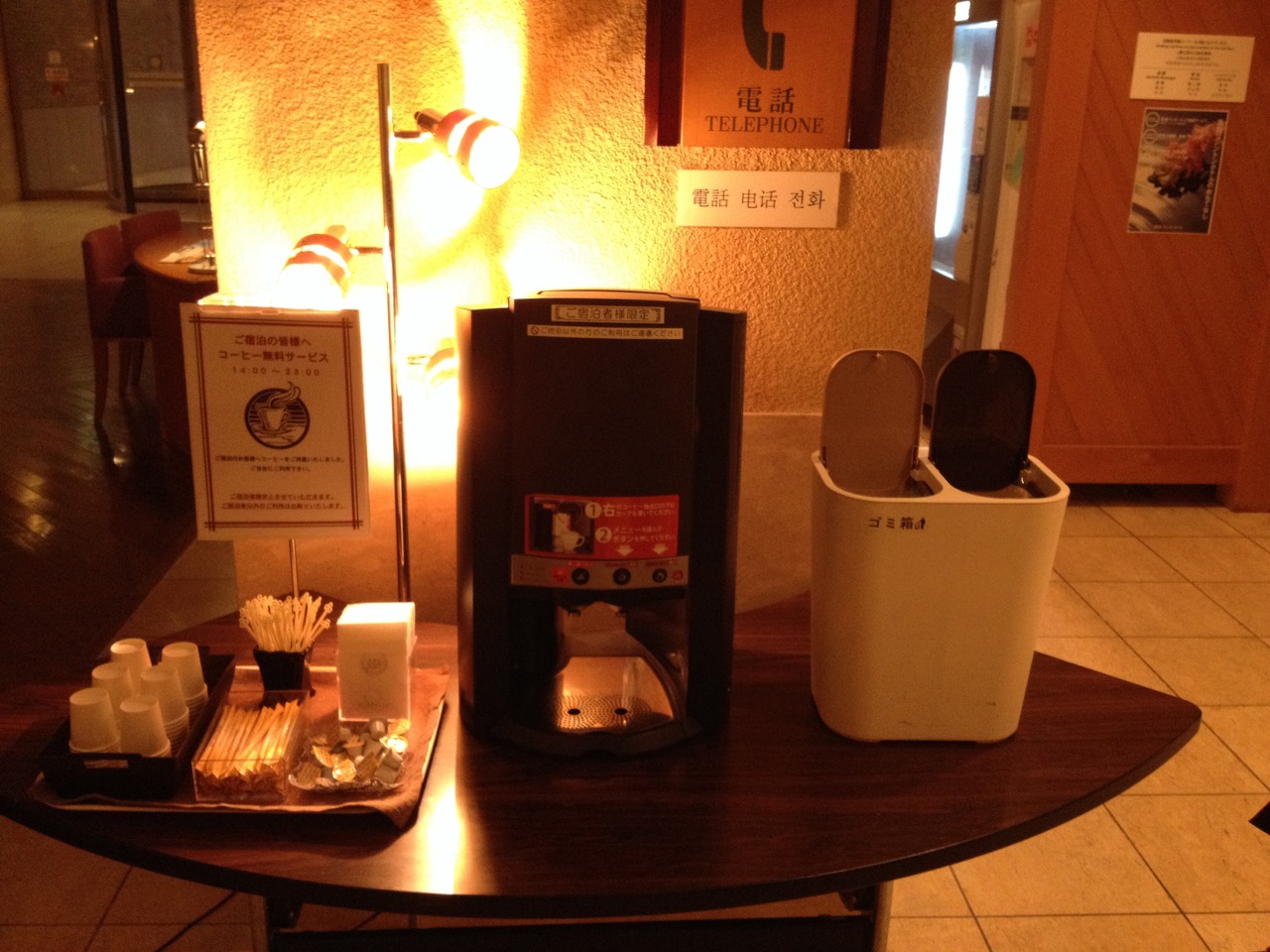 エントランスを入ると開放的な吹き抜けのロビーがあり、チェックイン後から23:00まで、コーヒーサービスがありました。