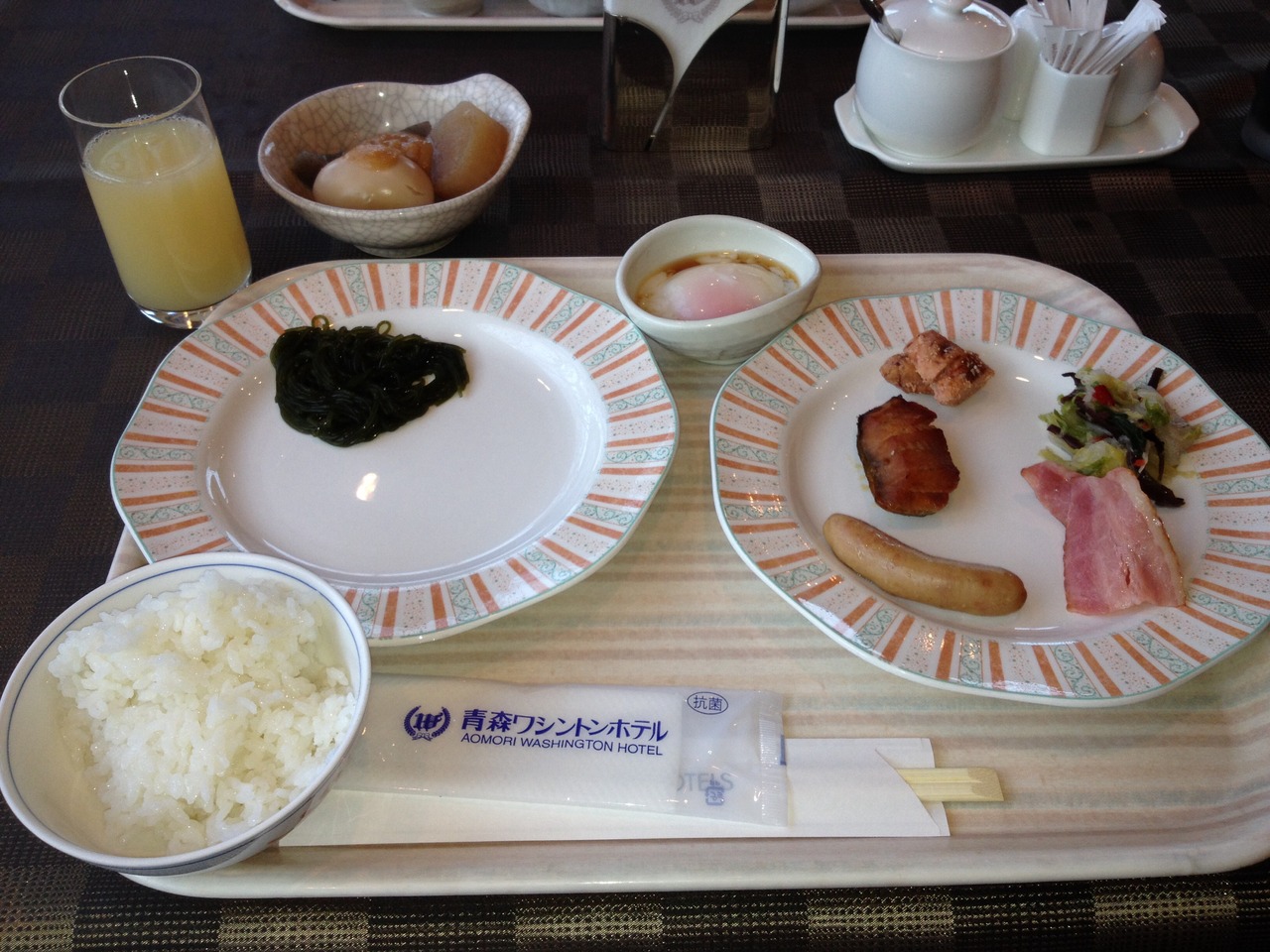 朝食はビュッフェで、和洋揃っており、地元の料理もたくさんあります。生姜味噌おでんやたらこ、わかめ麺、漬物など優しい味で美味しかったです。