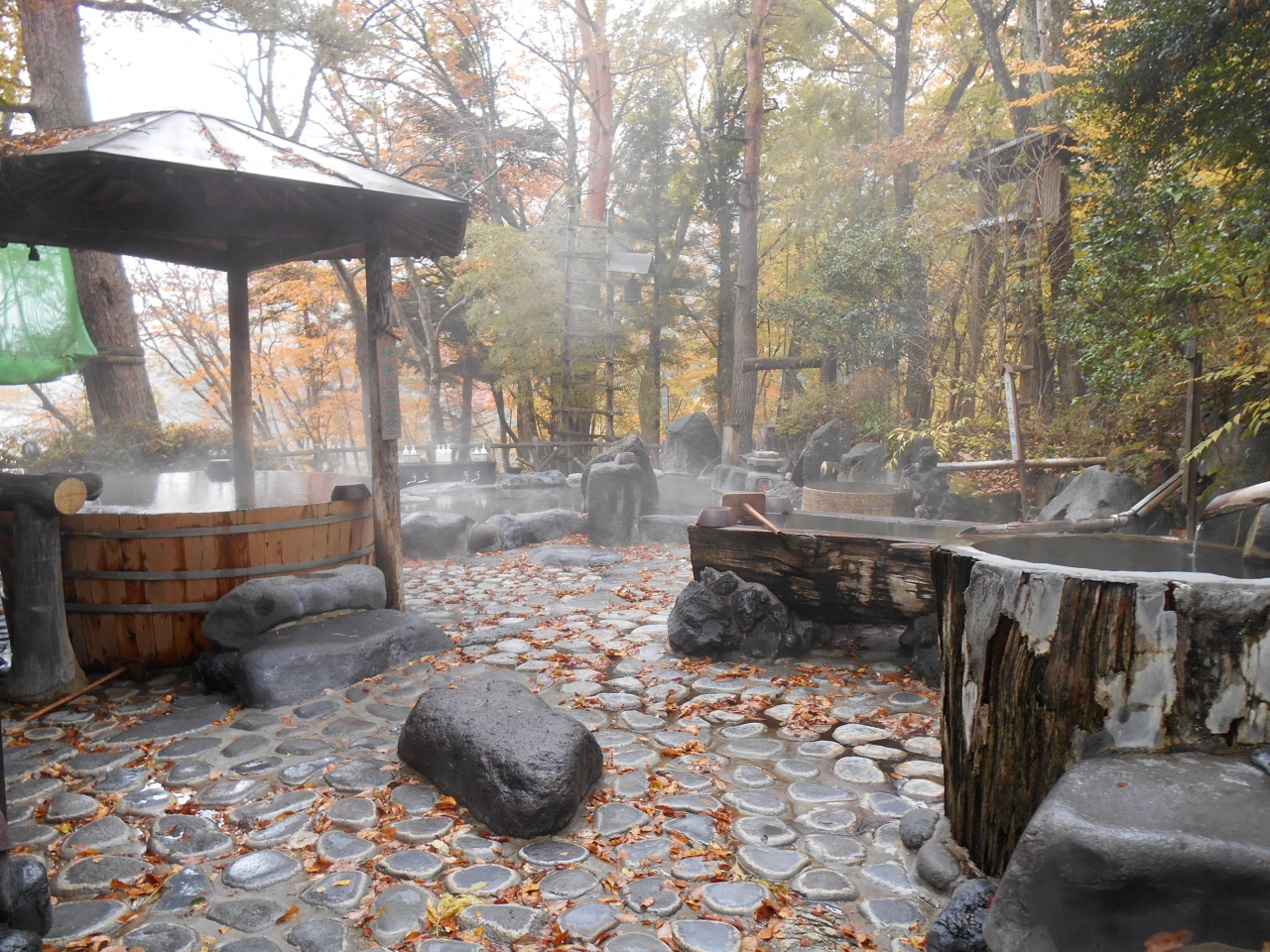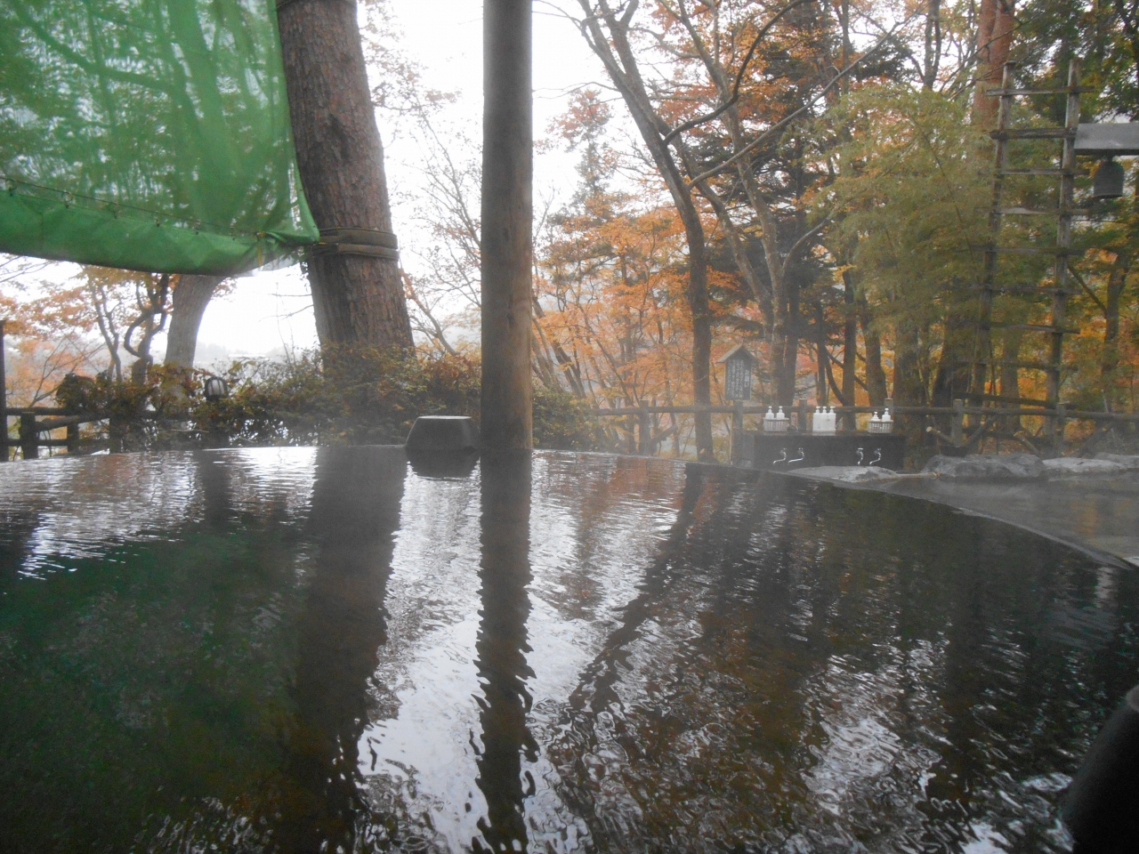 猿ヶ京温泉赤谷湖に面した静かな温泉旅館です。内湯から眺める赤谷湖も格別ですが、露天風呂に浸りながら眺める紅葉の赤谷湖はさらに極楽でした。たまたま行った日は小雪が舞ううっすら雪化粧の紅葉露天風呂を独り占めでき、この上ない幸せを感じました。露天風呂は混浴で、大きな樽風呂とか岩風呂、釜風呂・・・いろいろあって楽しめます。夜には女性専用時間も設けられているので、混浴はちょっとと思う女の人も大丈夫です。最新のホテルではありませんが、ゆっくりと温泉情緒を楽しめます。