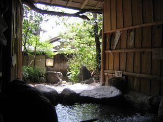 創業1843年の老舗旅館です。旅館前にはチャボが徘徊していてチャボ優先なので道を譲ります。受付で入浴料を支払い少し離れた温泉施設に向かいます。男女別内湯から外に出ると繋がっていて露天風呂は混浴になっています。あまり広くはないですが木々に囲まれ気持ちがいいです。打たせ湯や変わった蒸し風呂もありました。泉質はアルカリ性なので肌がスベスベになります。湯上りには温泉たまごが置いてあり、セルフで50円置いて食べられます。