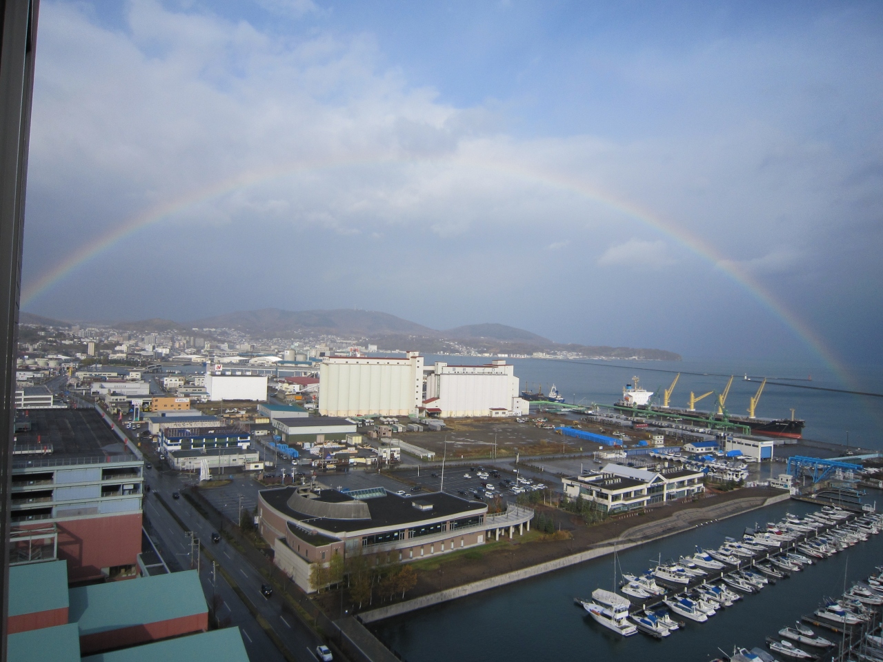お部屋は洗面所なども広く使い勝手がいいです。お部屋からそのまま外を通らず食事や買い物に行けるのも便利です。駐車場もチェックアウト後も利用でき、入れ直さずにすみました。この日は、小雨が降ったりするあいにくの天気でしたが、海に架かる虹を部屋から見れてなんか得した気分でした。